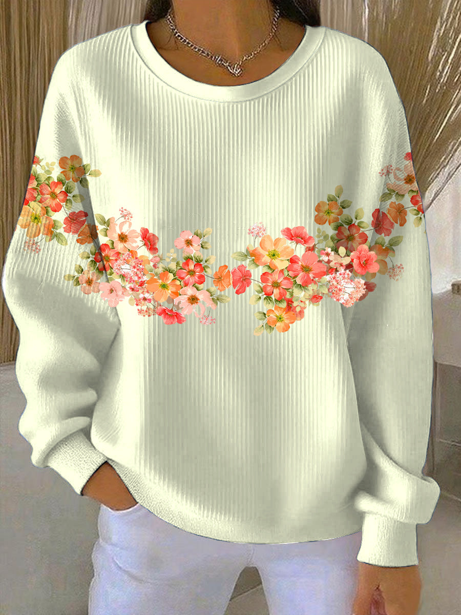 Дамска бяла суитчър с оранжева цветна тапицерия