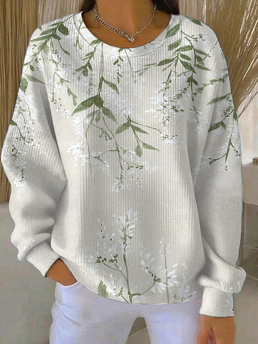Дамска деликатна светло оцветена суитчър със зелен печат на листата