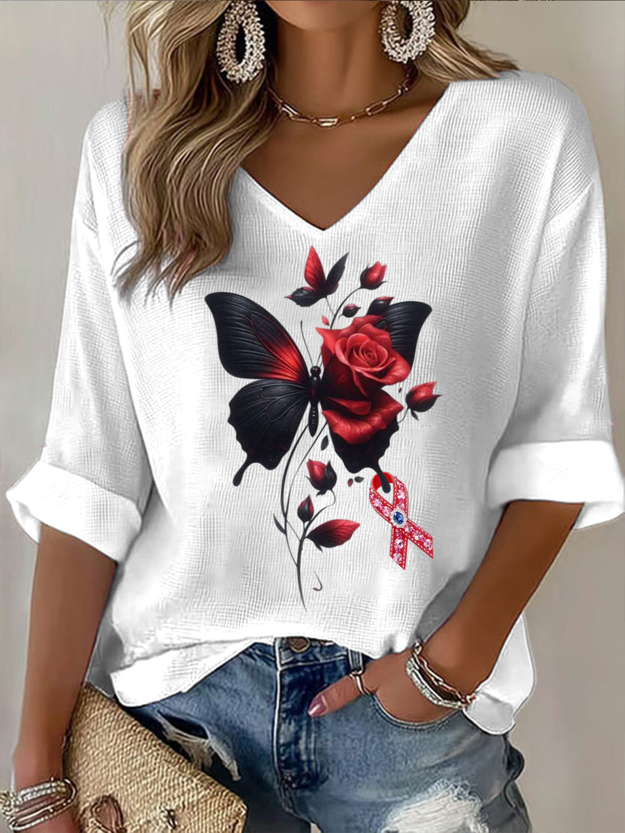 Дамска елегантна пеперуда и панделка бяла v-врата с дълги ръкави риза