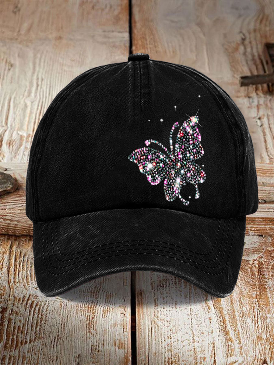 Дамски европейски стил модерна черна шапка с изящен кристал пеперуда модел, ежедневна мода