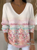 Дамски мечтания цветен пейзаж v-врата пуловер