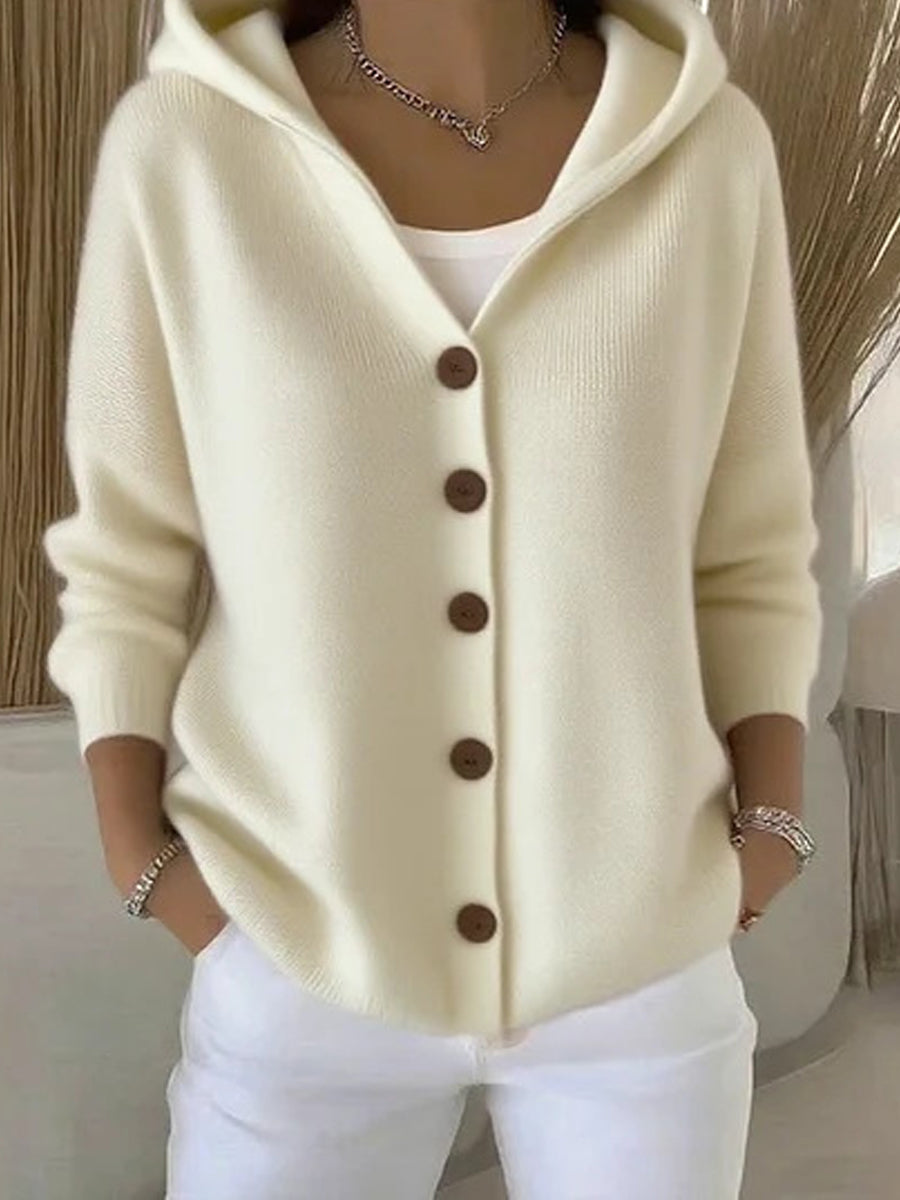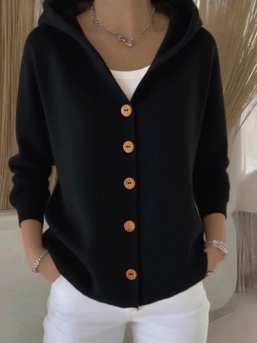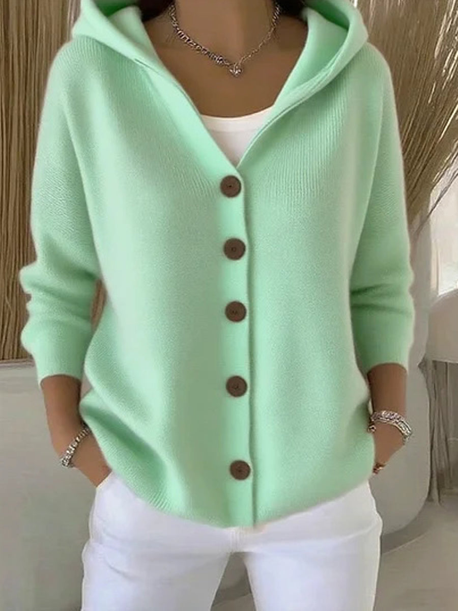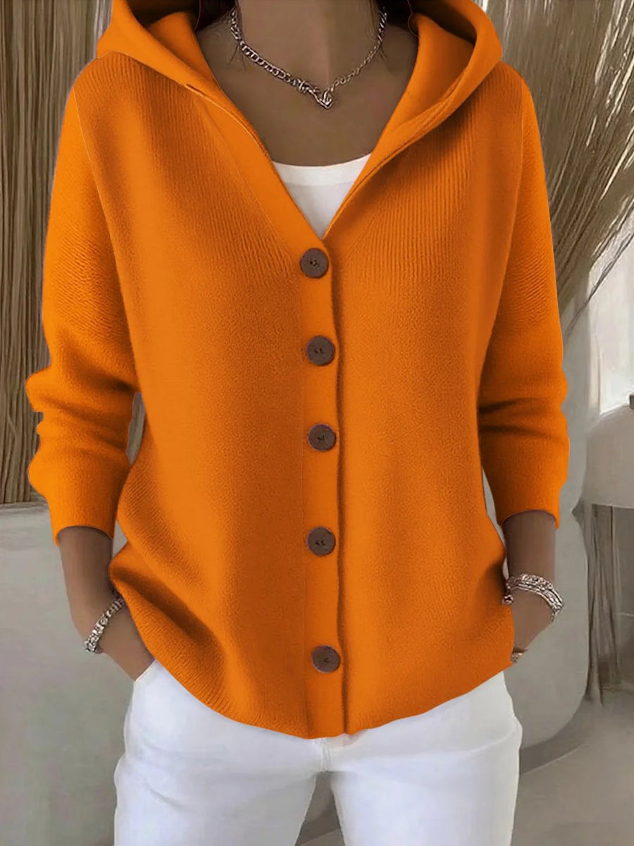 Дамски мода случайни бутон-нагоре плетене с качулка жар