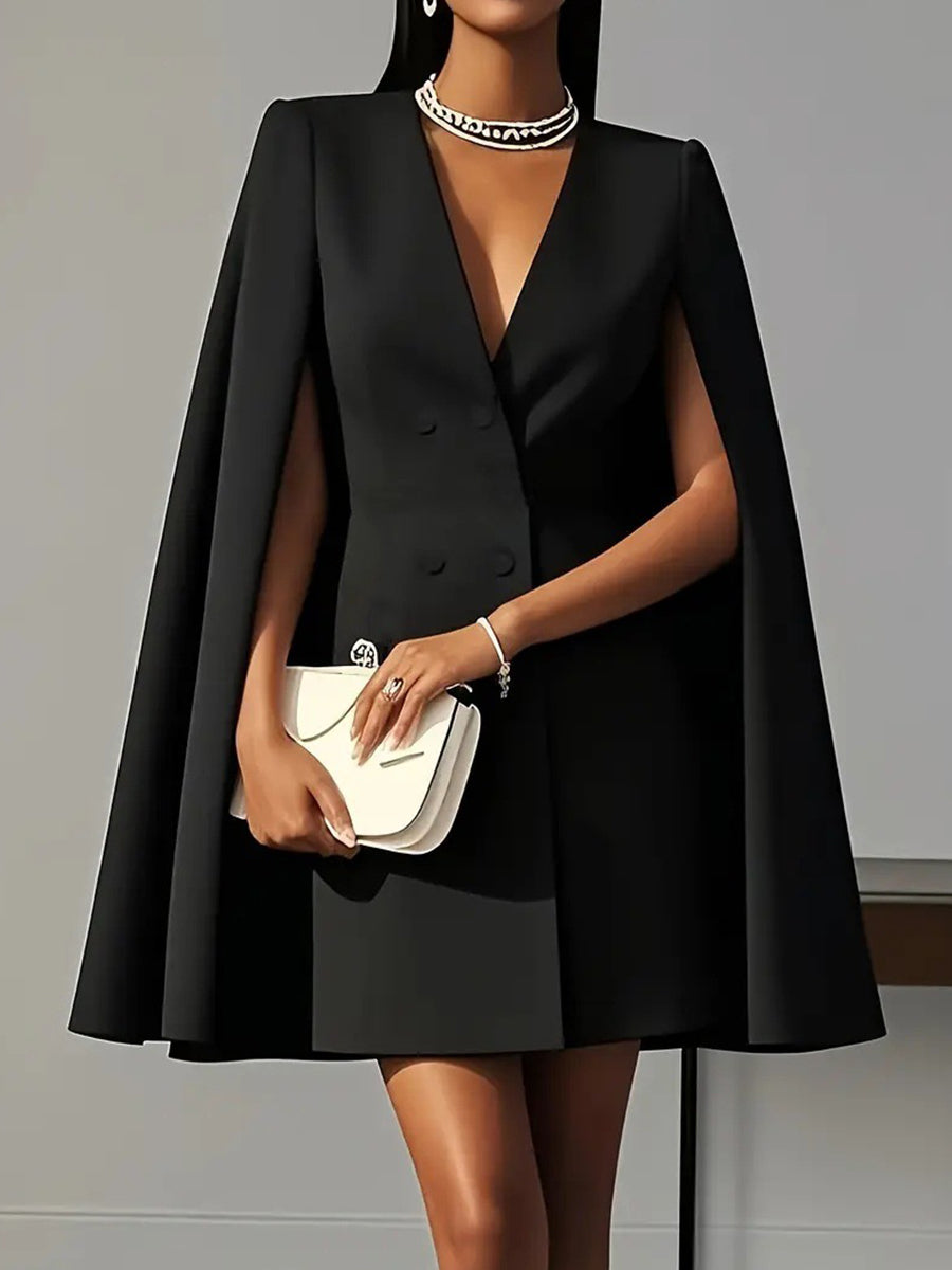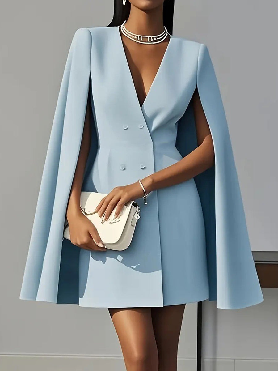 Дамски ретро двойна-гърди шал нос плътен цвят костюм рокля