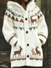 Жените реколта коледа изкуство печат уютен пуловер яке