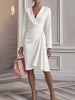Дамски ретро кросоувър v-врата талията плътен цвят с дълги ръкави рокля