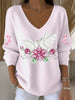 Дамски сладък гълъб бродирани светло розов пуловер v-neck
