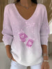 Дамски сладък розов снежен ръкавица v-врата пуловер