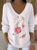 Дамски сладък светло розов v-neck пуловер с любезна розова и бяла цветна бродерия