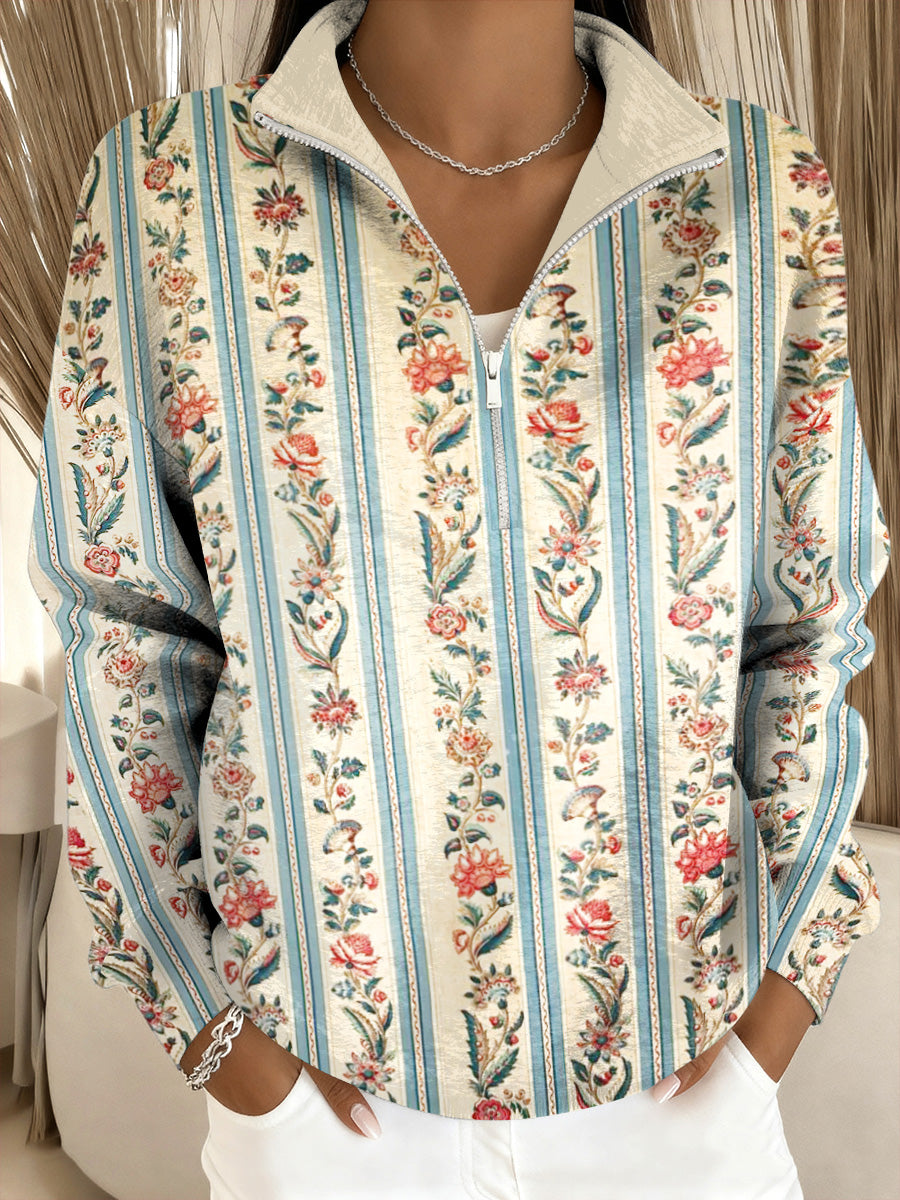 Дамски цветни райета щанга яка суитчър