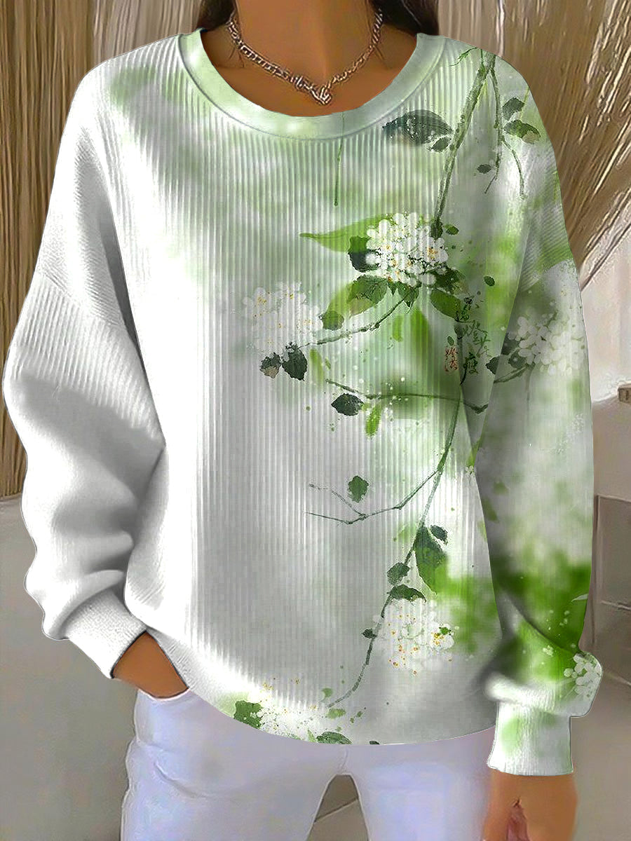 Жените абстрактни цветя живопис с маслени бои изкуство случайни екипаж врата пуловер