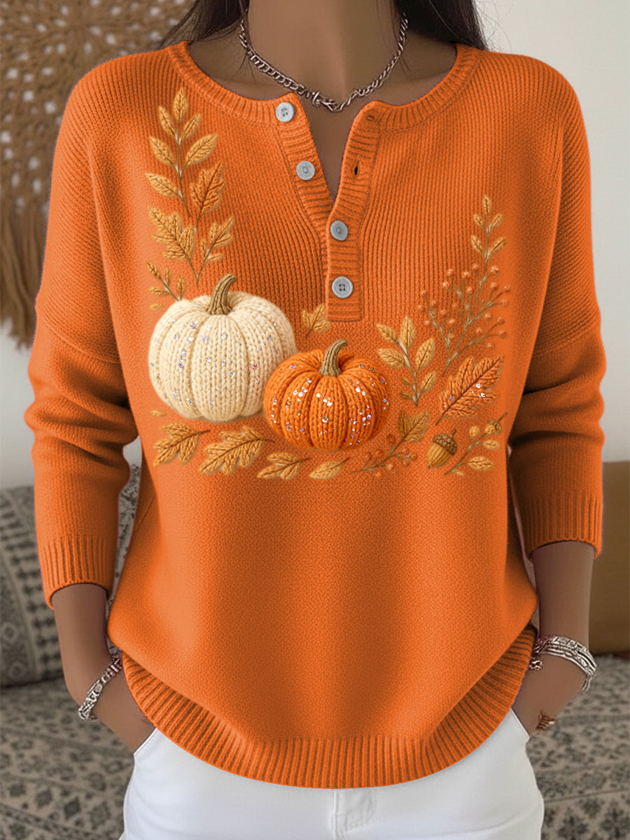 Жените благодарност тиква флорални изкуство v-врата пуловер