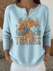 Жените благодарност цветни тиква изкуство v-neck top