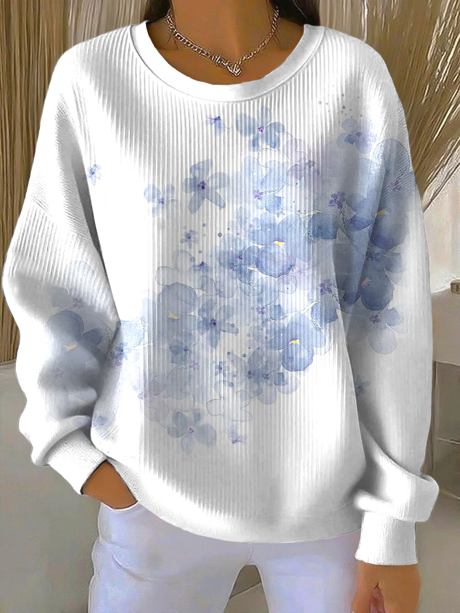 Жените елегантен цветя ombre изкуство случайни екипаж врата пуловер