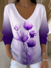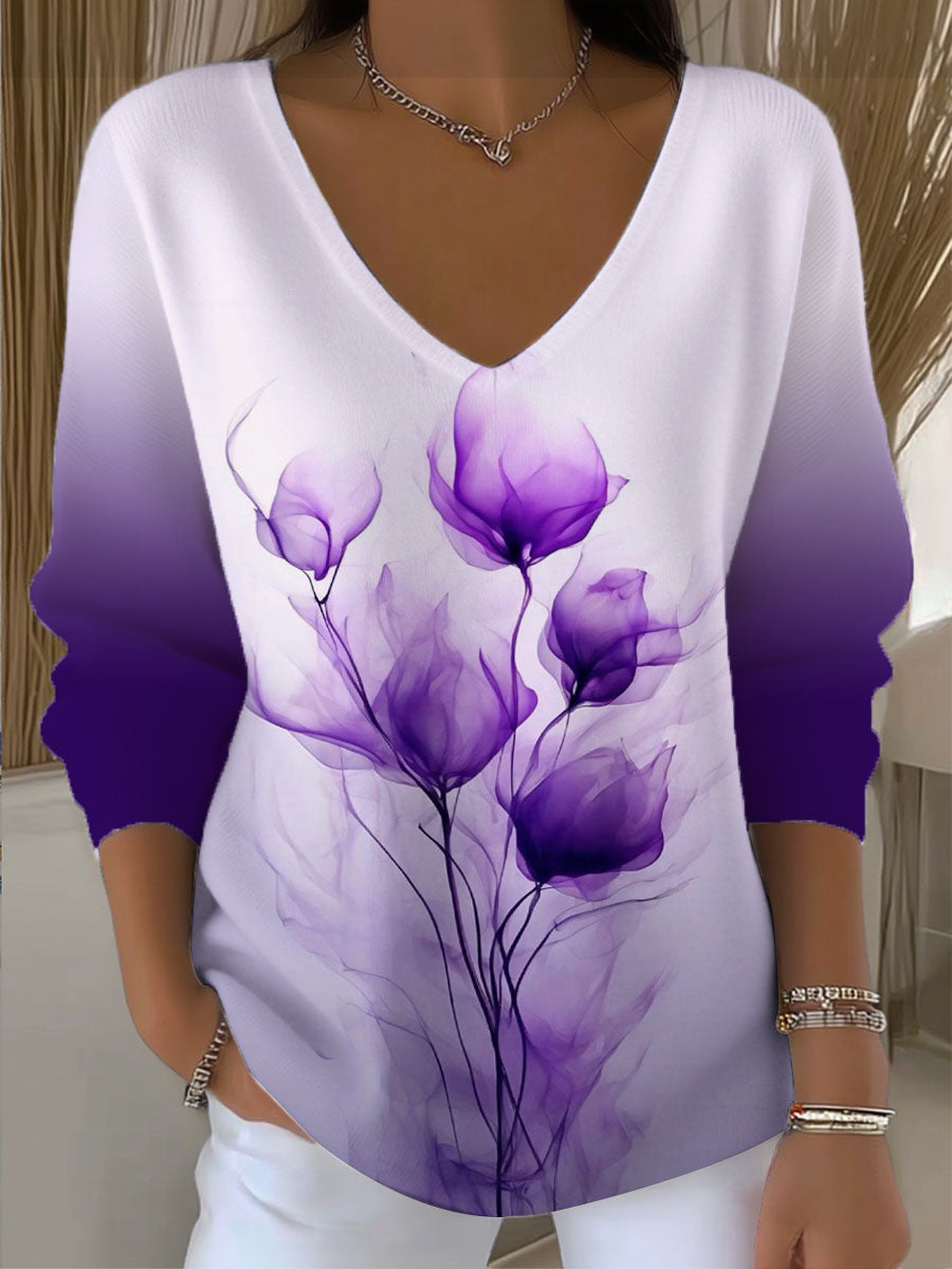 Жените лилаво флорален градиент v-врата пуловер