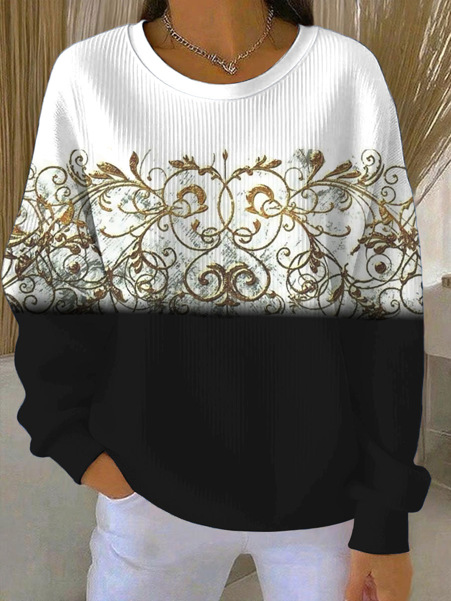 Жените луксозни злато свитък печат цвят-блок суитчър