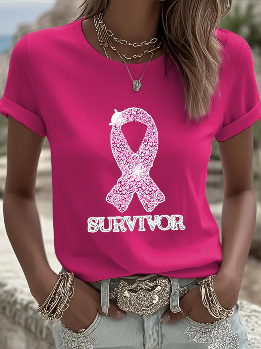 Жените рак на гърдата панделка кристал sequin печат случайни тениска