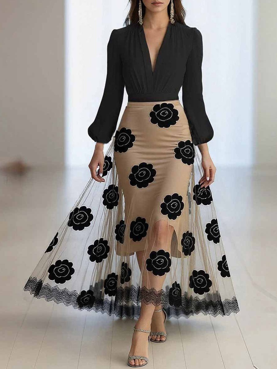 Дамски европейски стил бял v-врат пуловер с очарователна листна бродерия, модерен и удобен, лесен за създаване на дневен външен вид