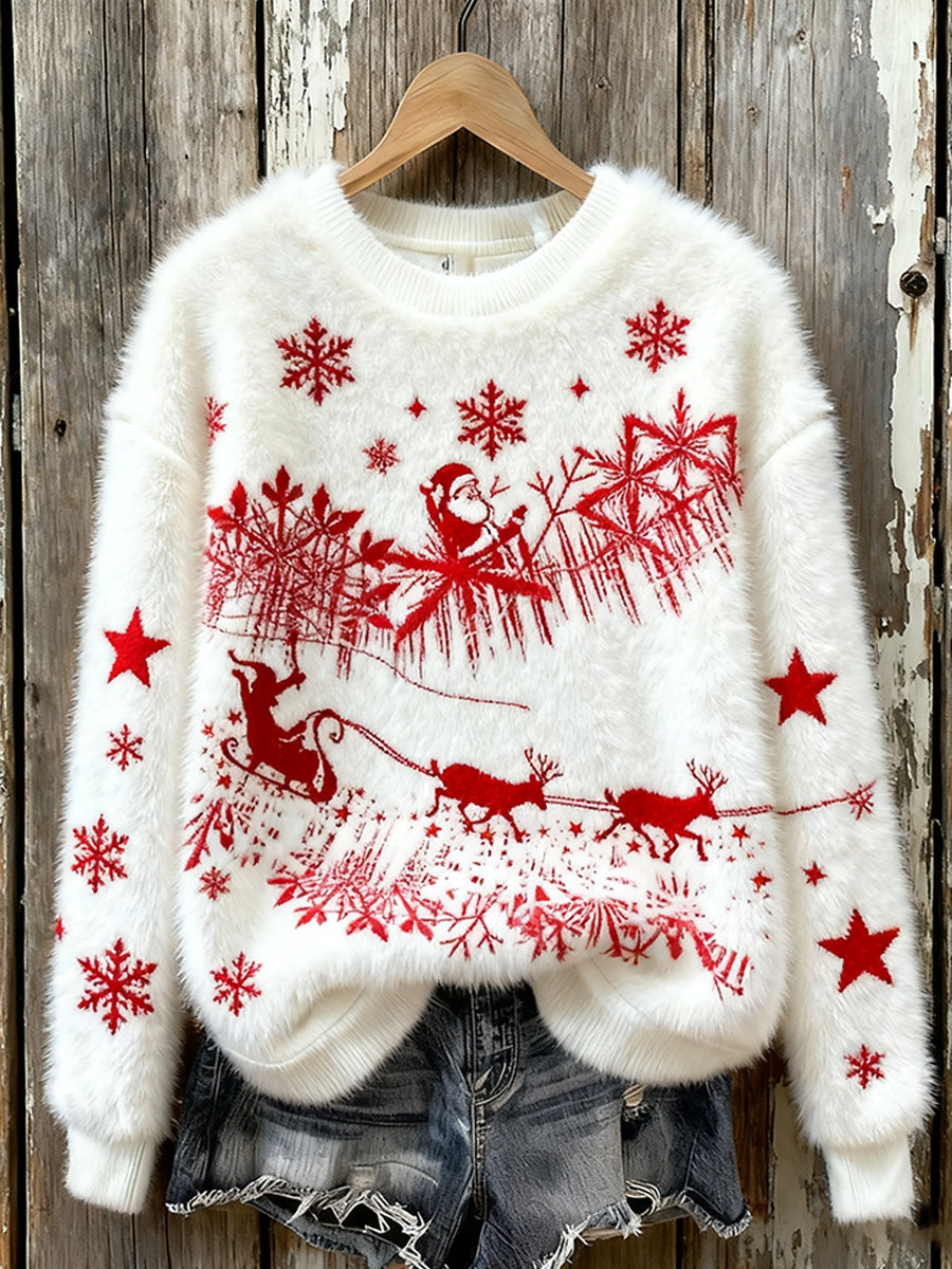 Жените реколта коледа изкуство печат уютен пуловер яке