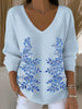 Жените реколта флорални sequin изкуство v-врата отгоре
