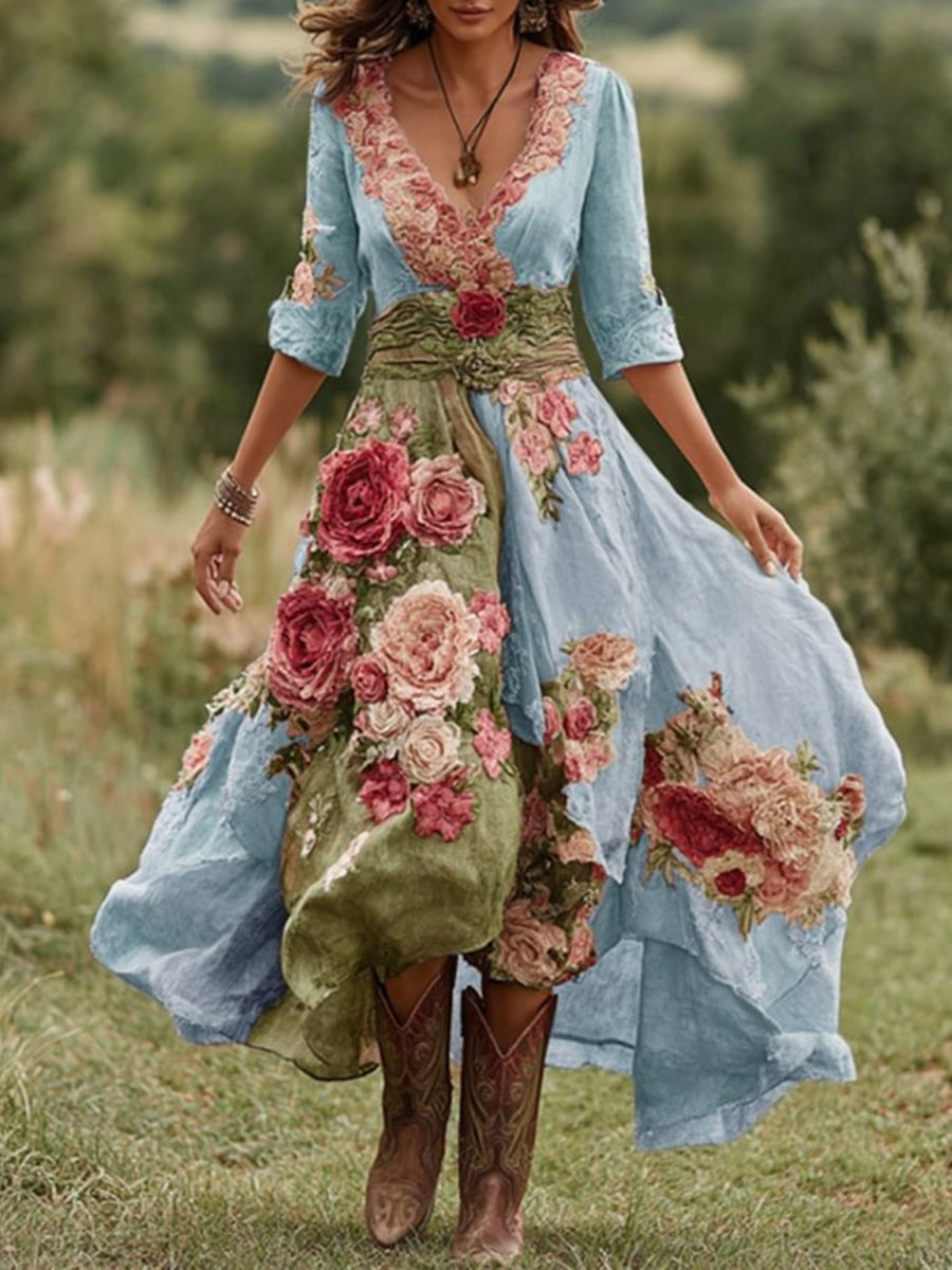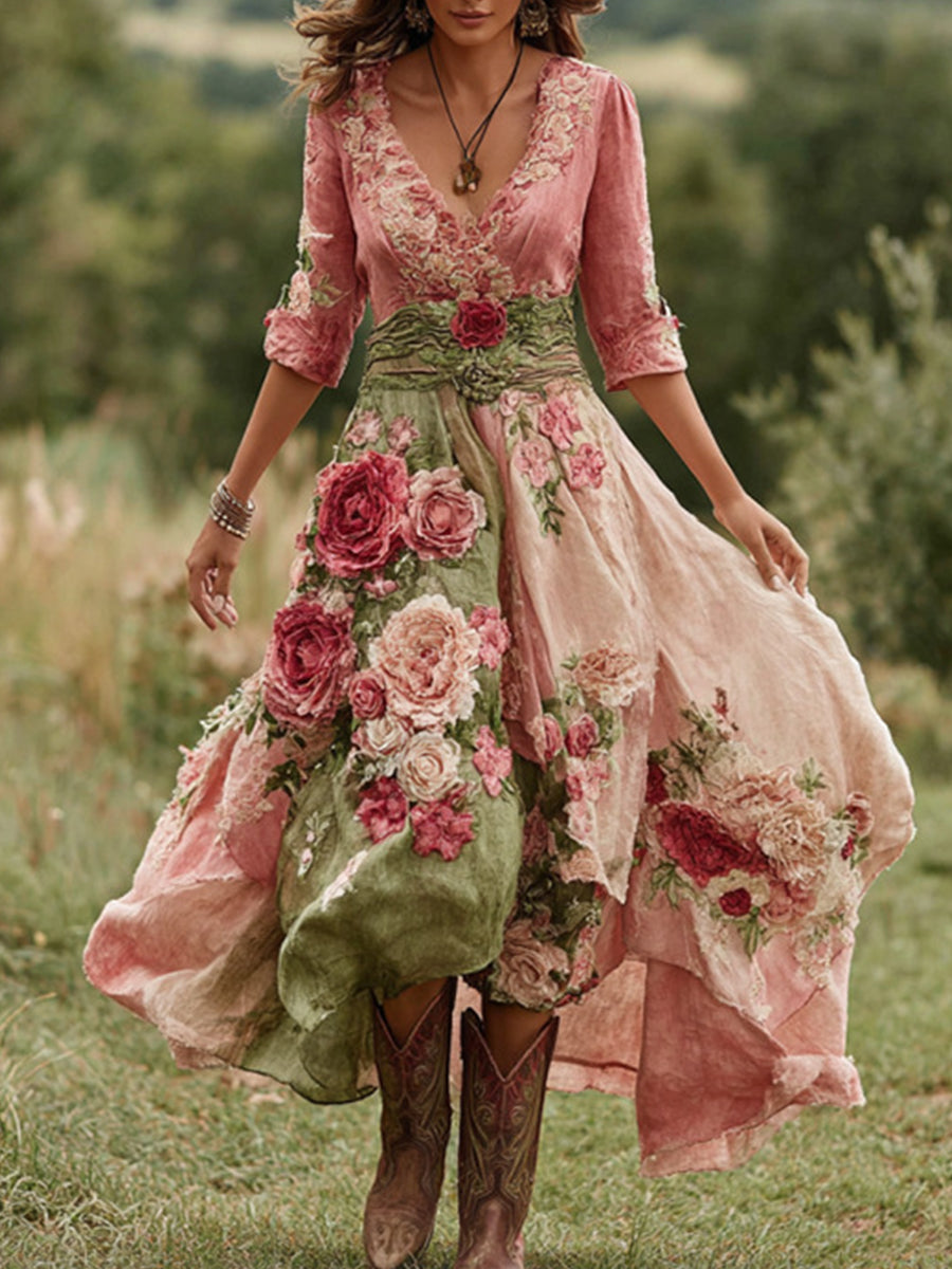 Жените реколта цветен комфорт midi рокля