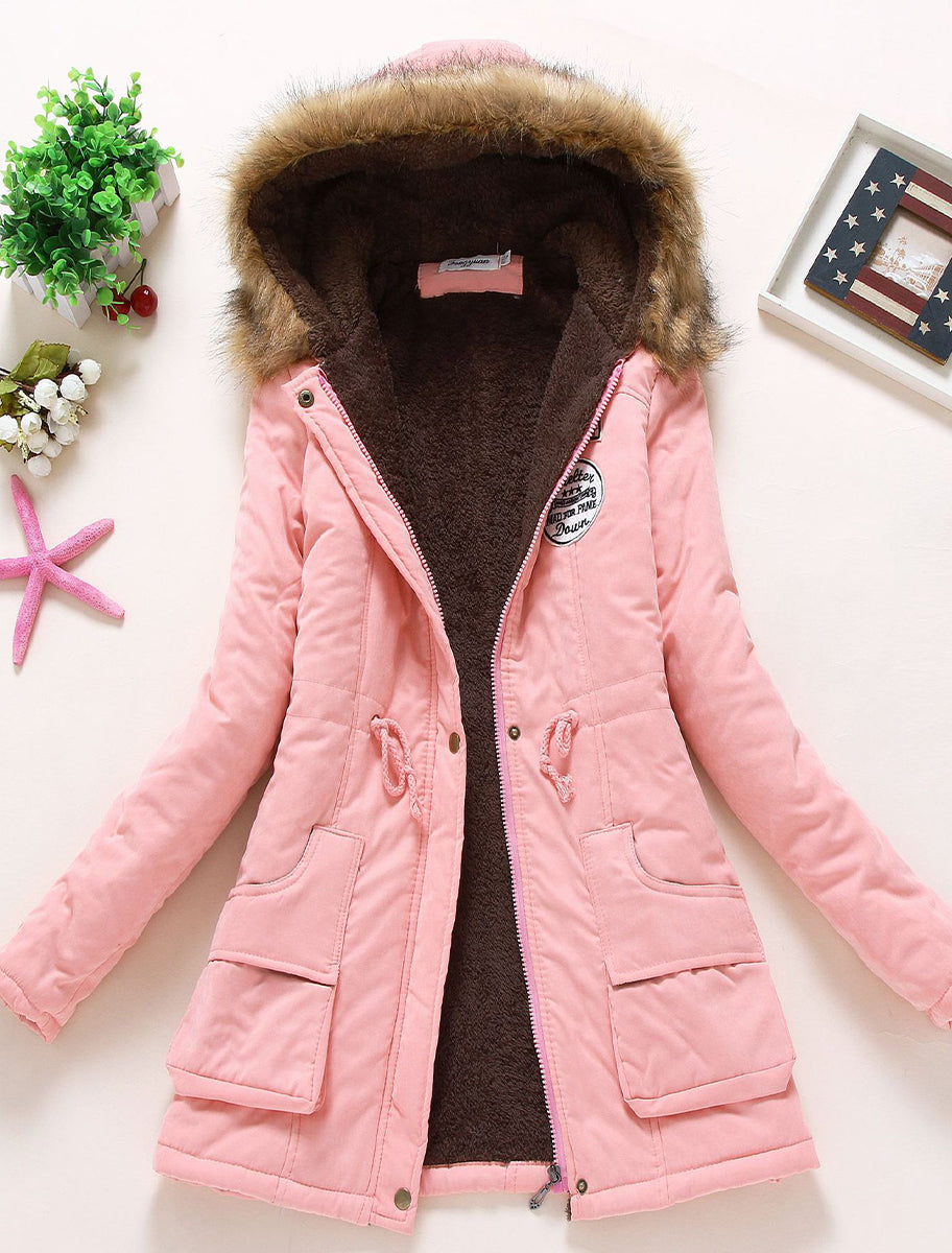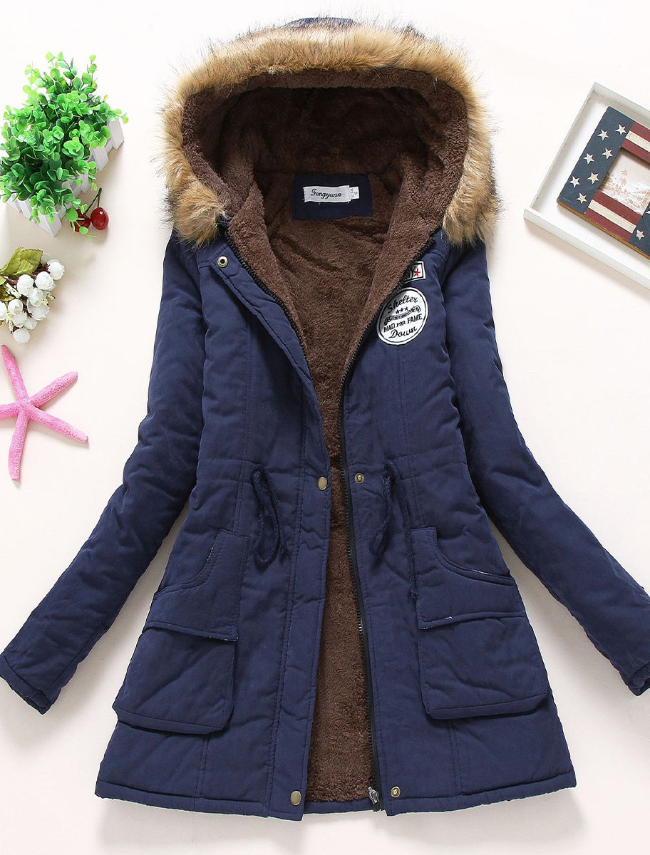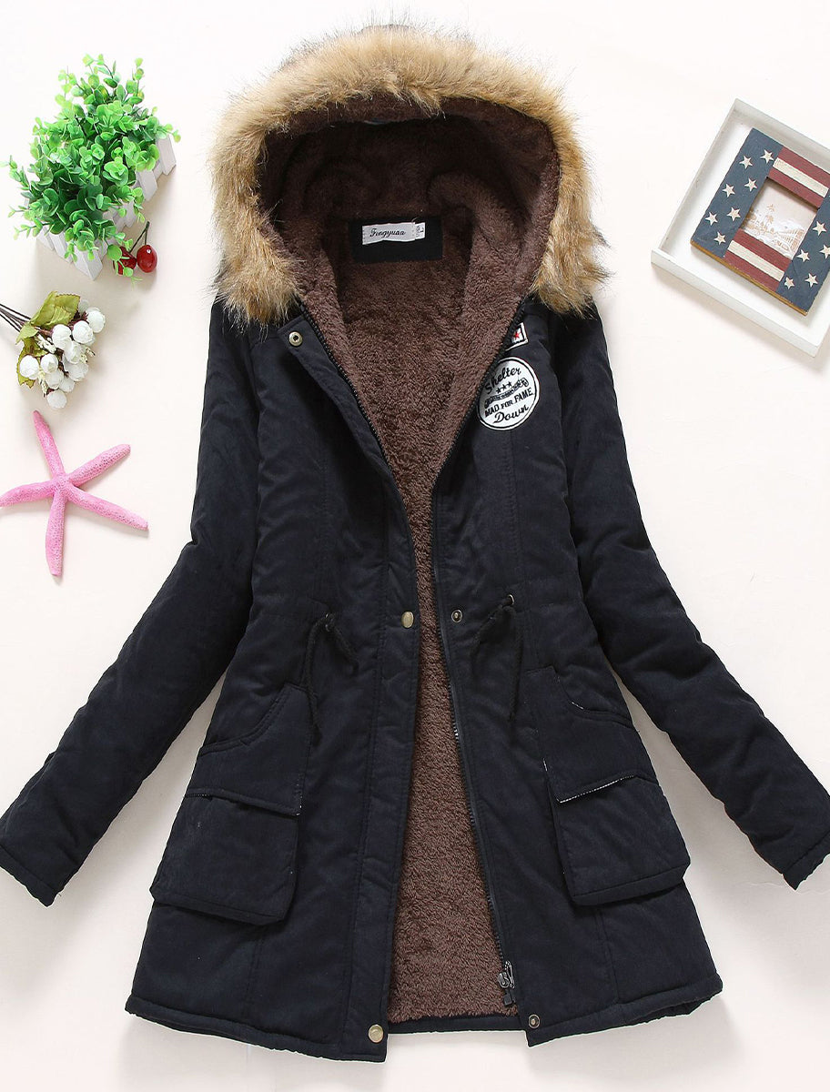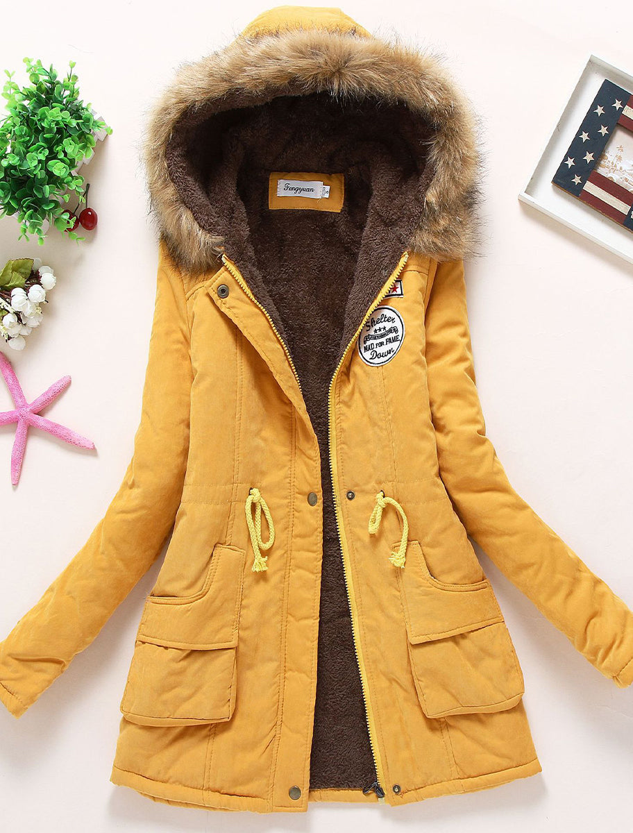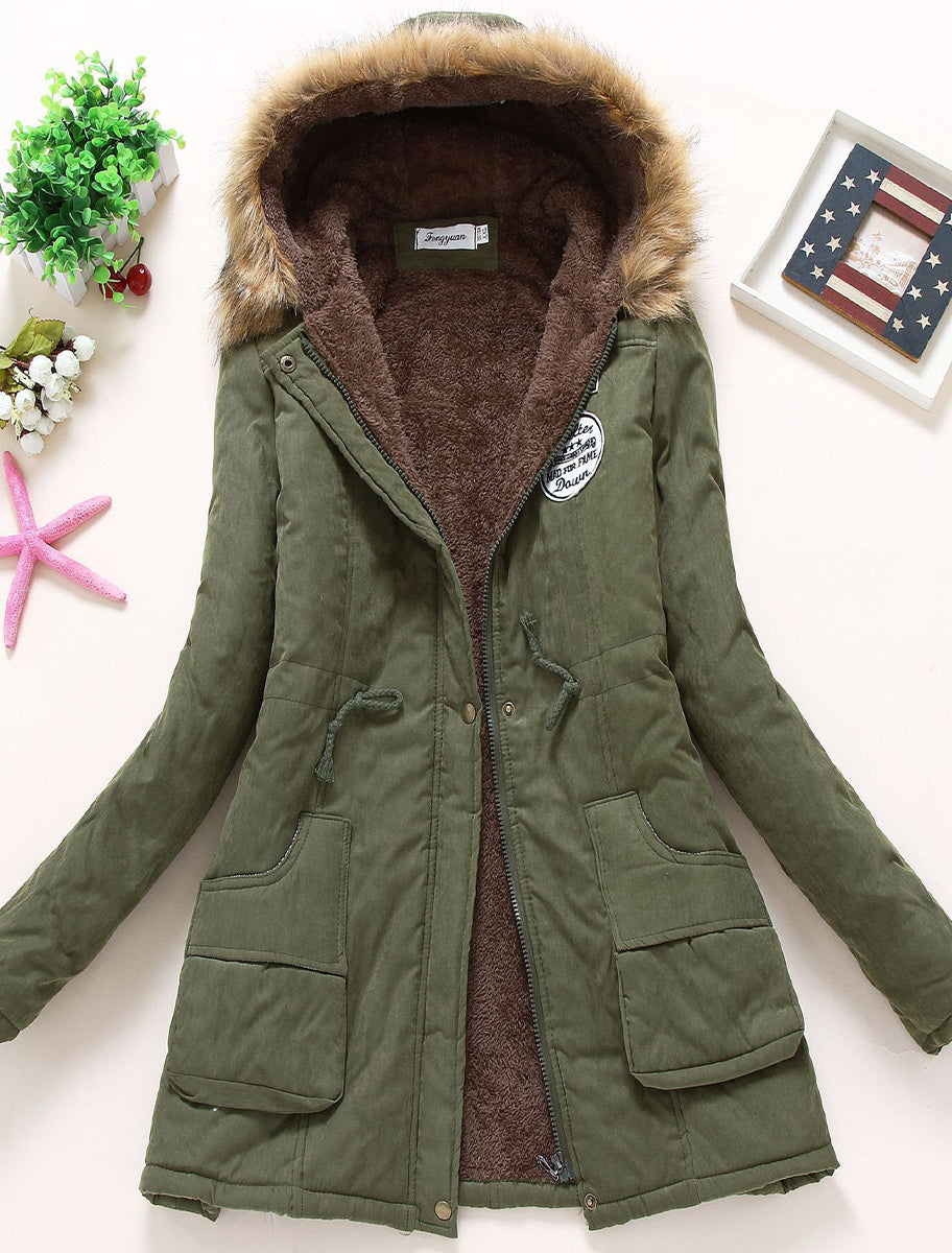 Жените ретро голям козина яка агнешъта облицовани дебел хлабав палто