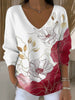 Жените шик злато & червено флорални линия изкуство печат v-врата отгоре