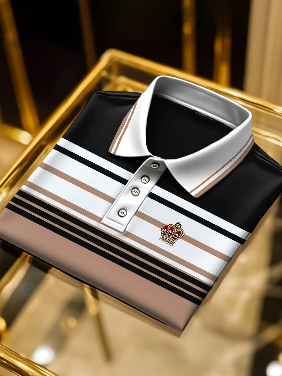 Мъже черно кафе-оцветени райета бизнес поло риза