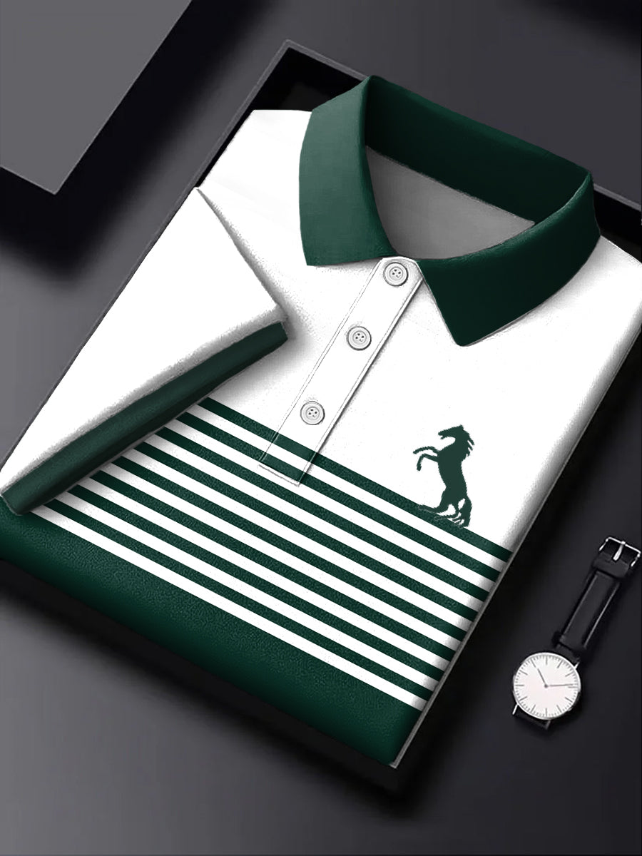 Мъжки мода случайни бизнес зелена раирана поло риза