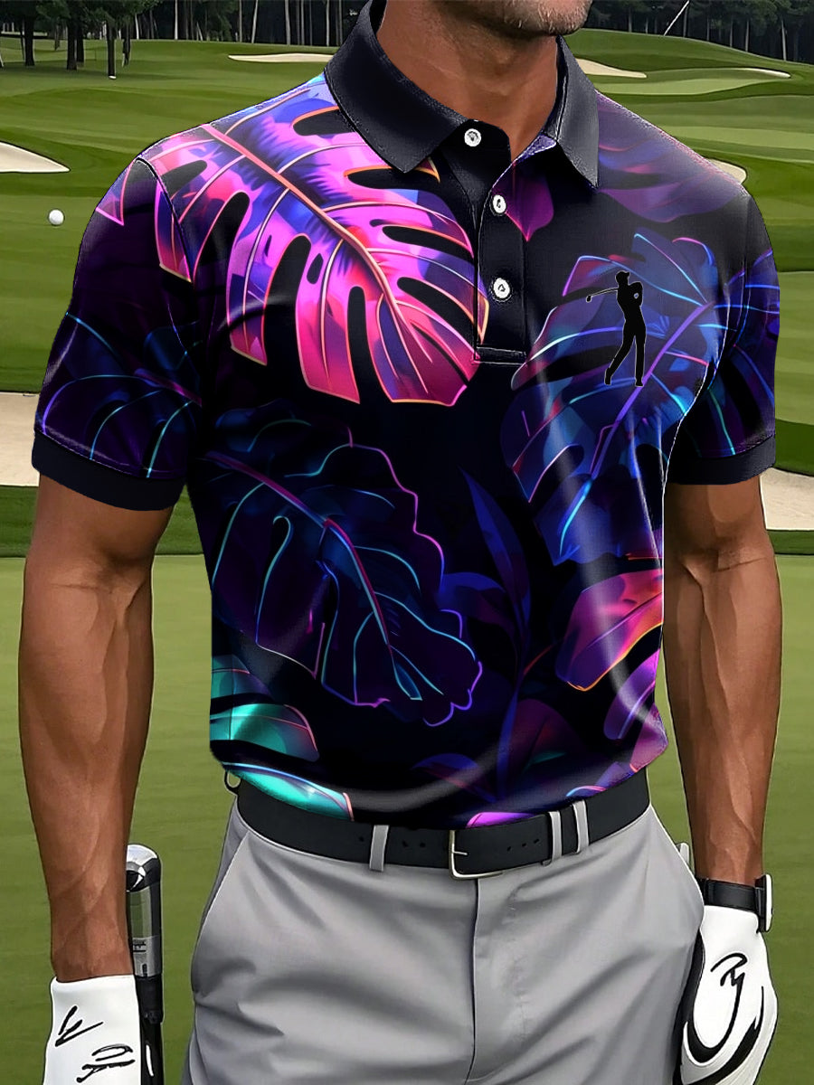 Мъжки реколта палмово листо изкуство печат случайни къси ръкави поло риза