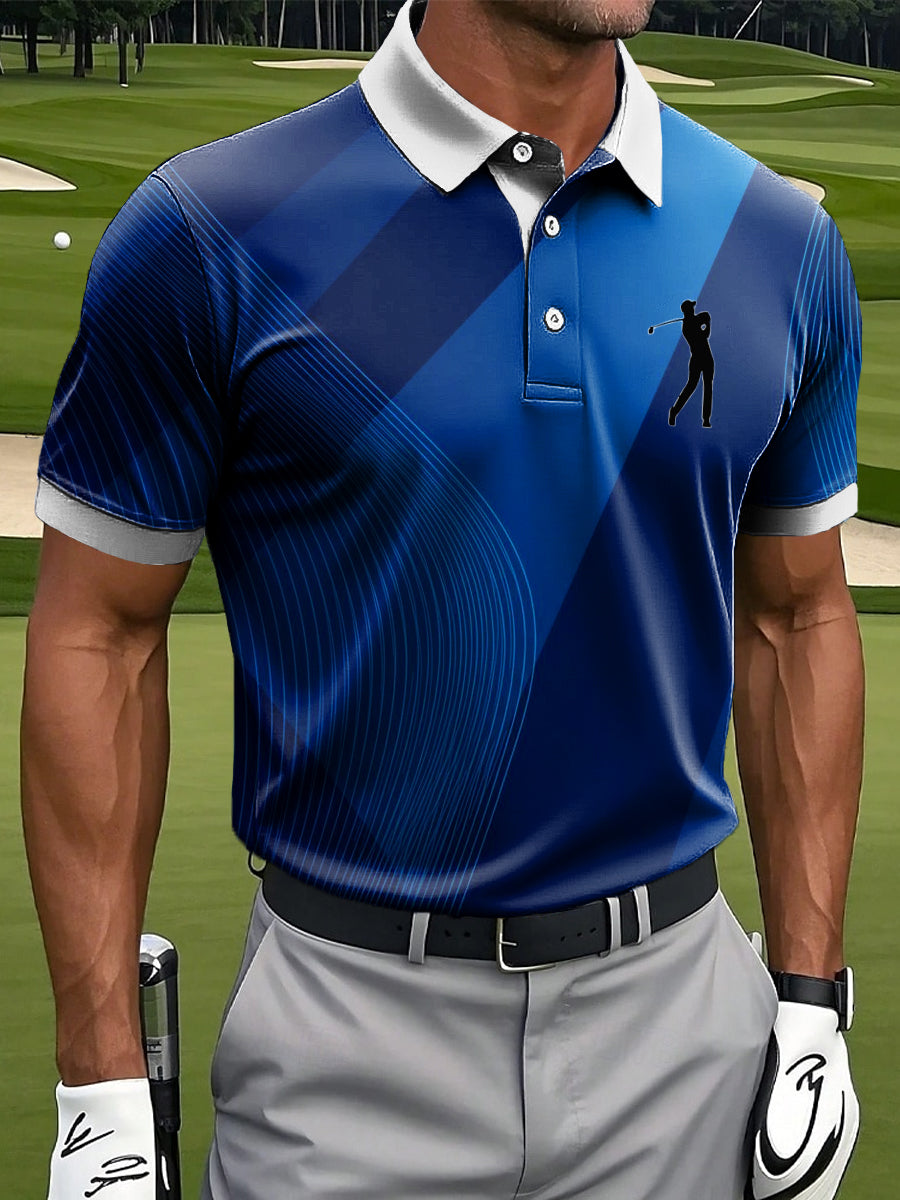 Мъжки ретро абстрактна линия изкуство печат случайни поло риза