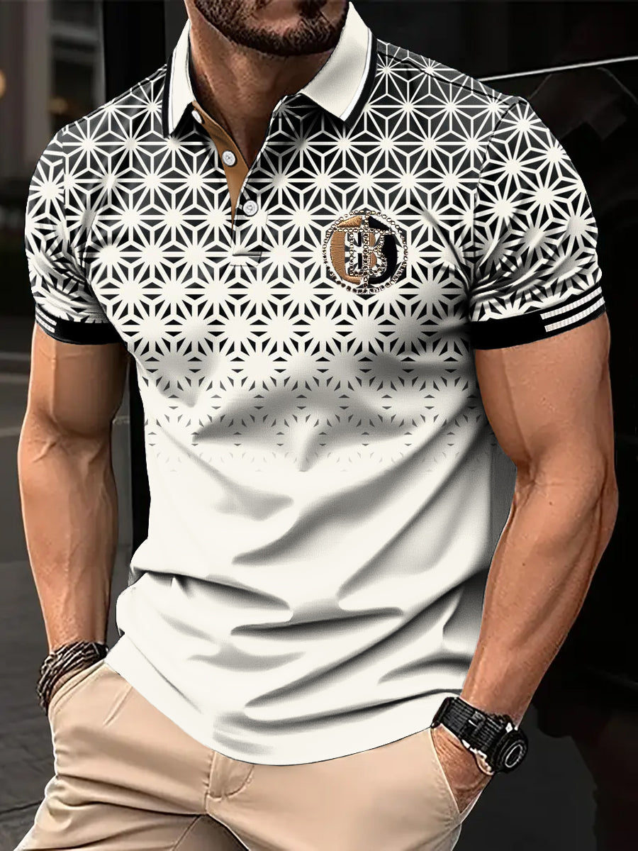 Мъжки ретро градиент геометричен пачуърк печатни случайни бизнес поло риза