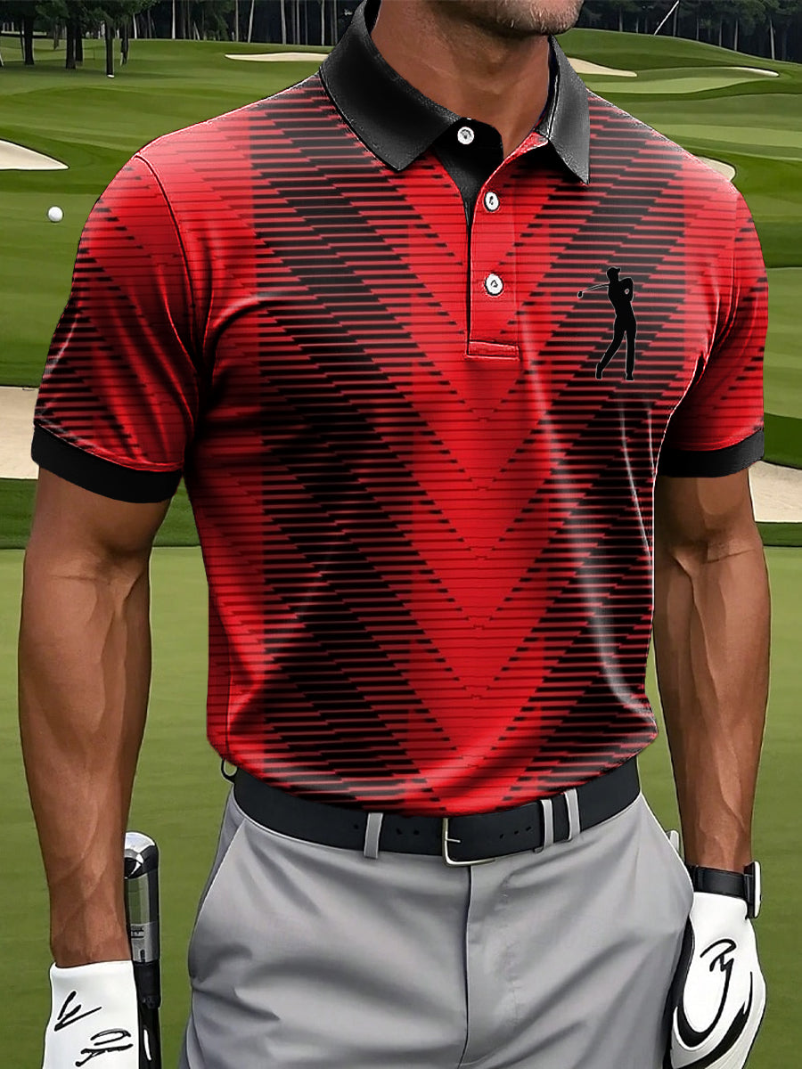Мъжки ретро градиент раирана изкуство печат случайни бизнес поло риза