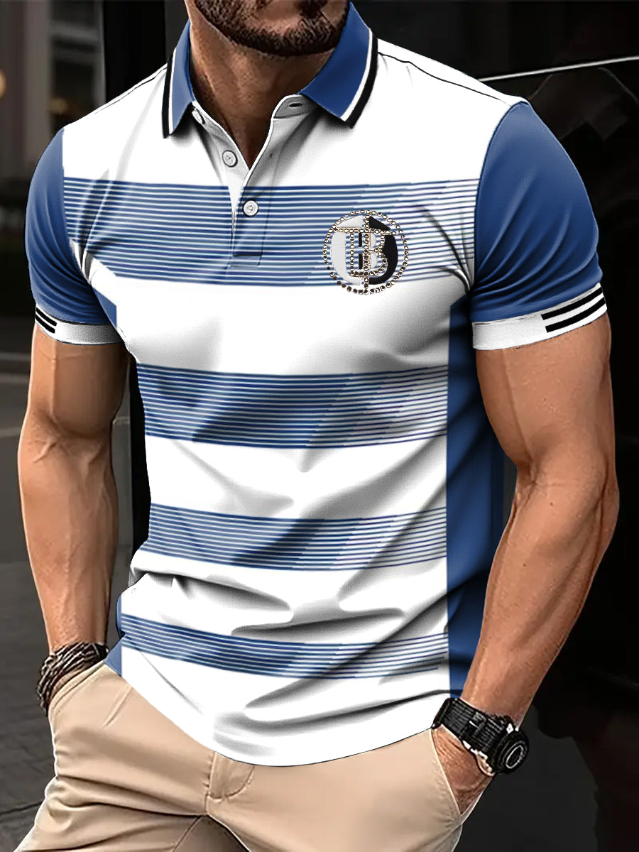 Мъжки ретро ивица цвят блок изкуство печат случайни бизнес поло риза