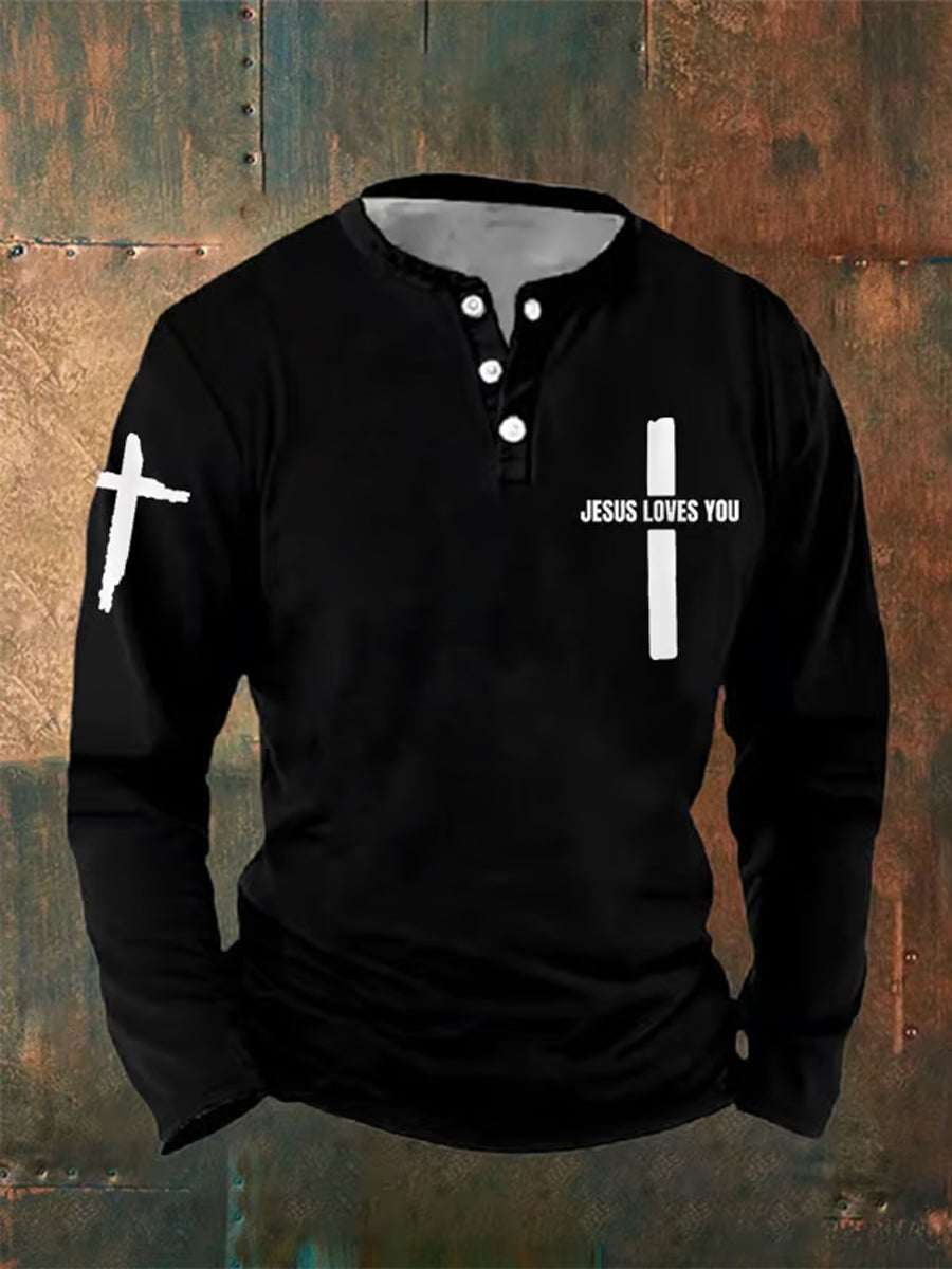Реколта мъжки вяра изкуство печат случайни три бутона поло риза