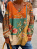 Ретро бохемски цветен печат реколта случайни памук v врата с дълги ръкави тениска