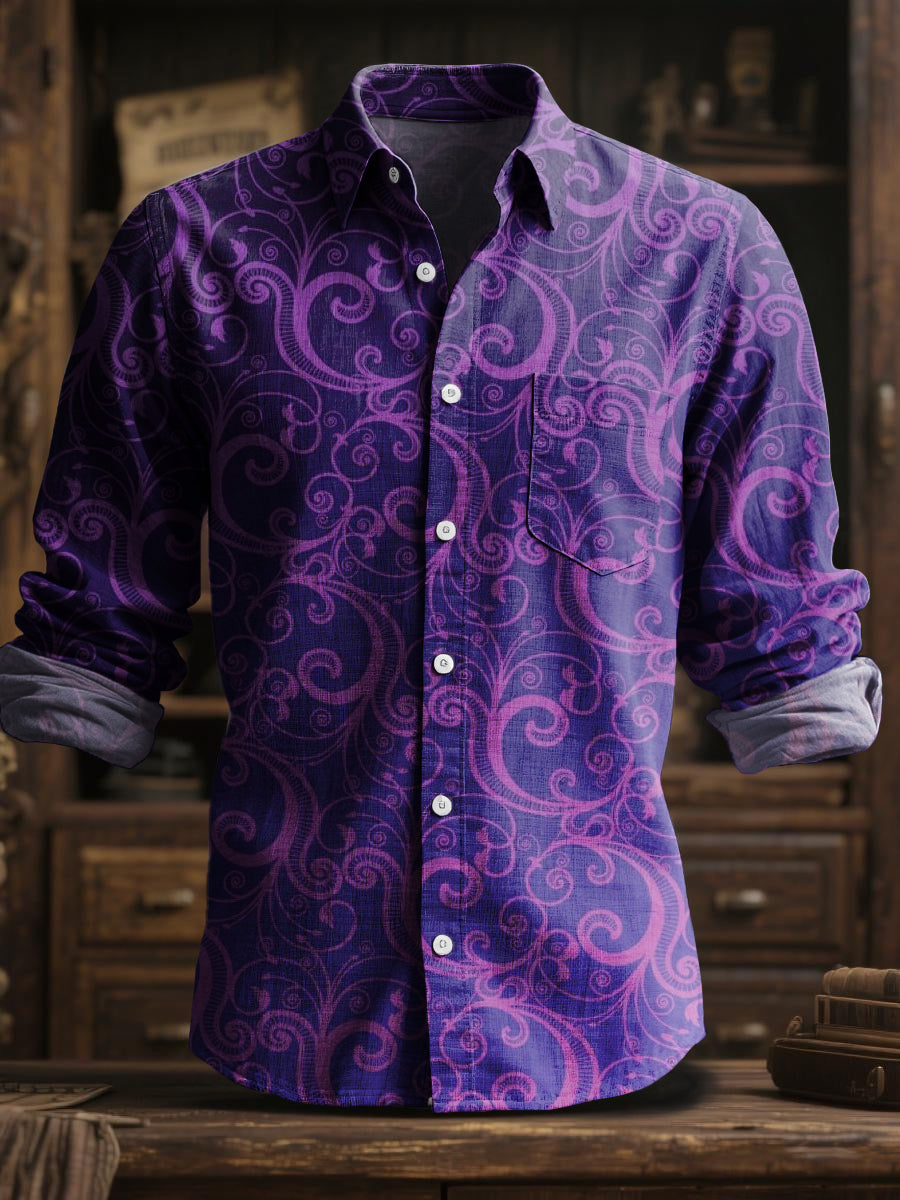 Ретро изкуство ивица модел печат с дълги ръкави риза