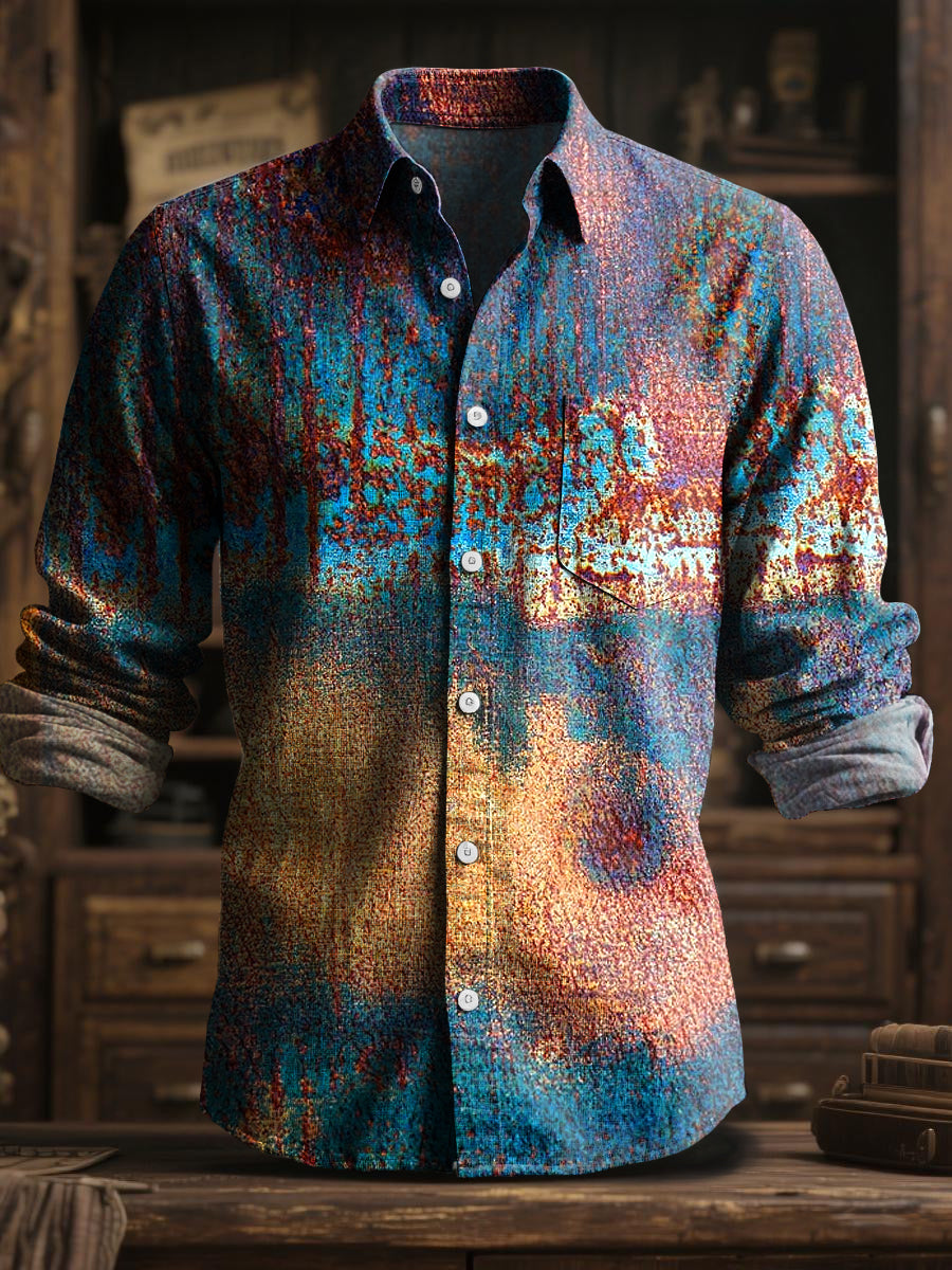 Ретро изкуство цвят-избледнял затруднена текстура с дълги ръкави риза