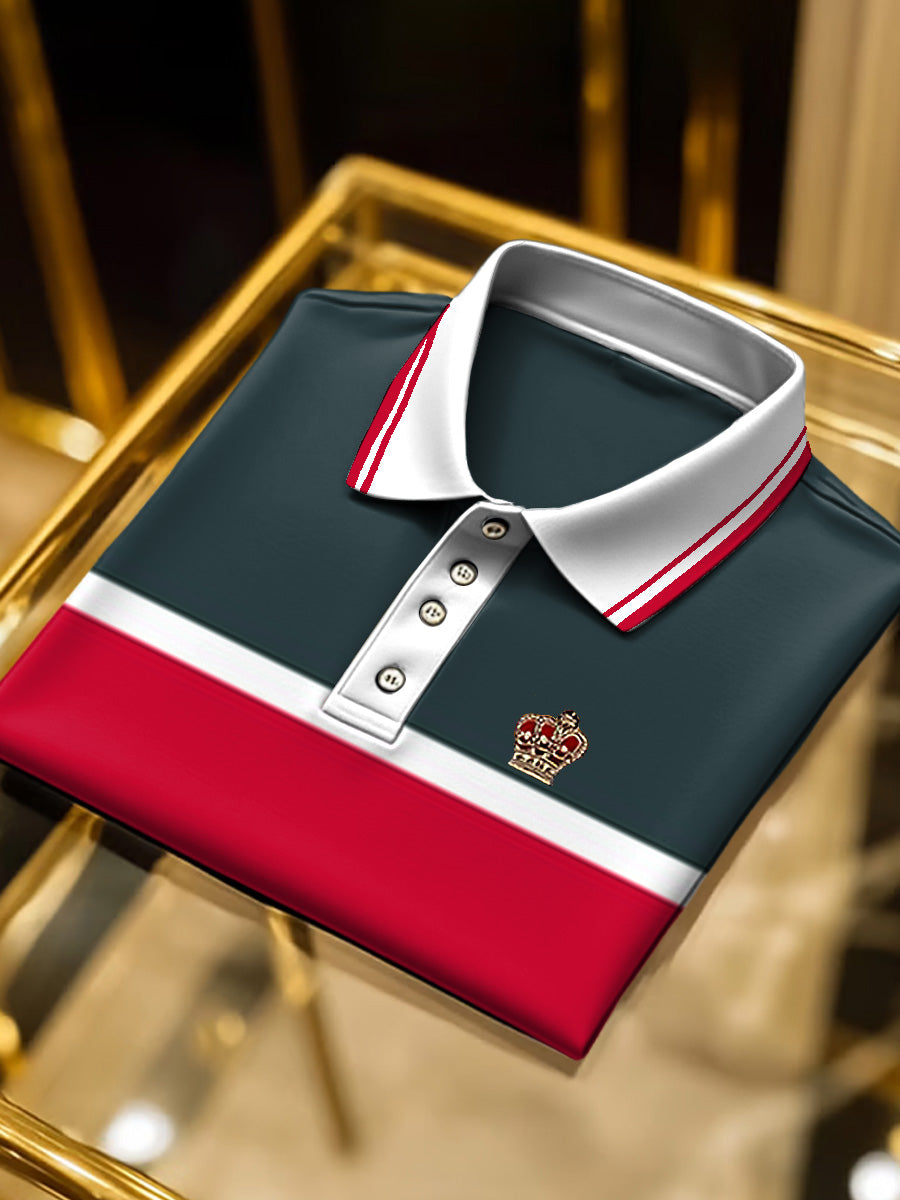 Червена и зелена раирана бизнес поло за мъже