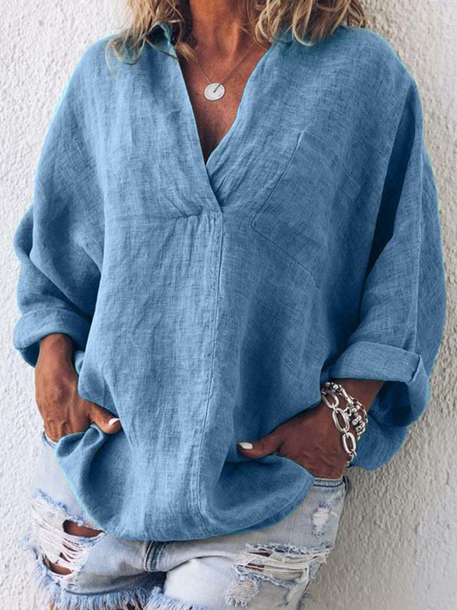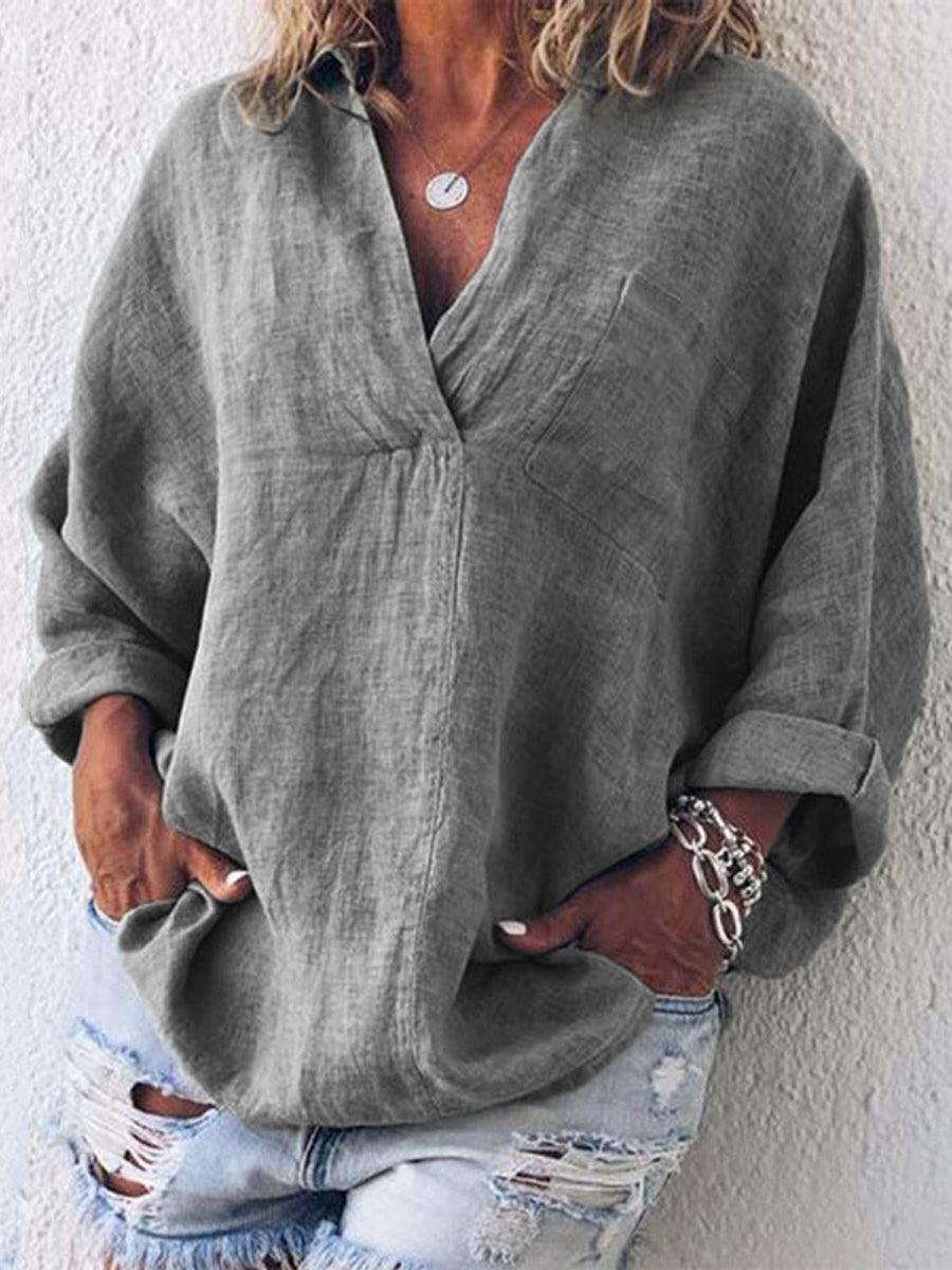 Жените реколта v-врата с дълги ръкави пуловер риза