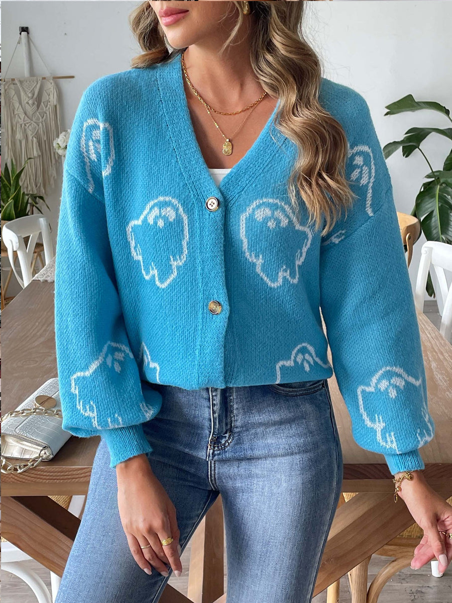 Жените реколта хелоуин призрак v-врата плетена жар-1