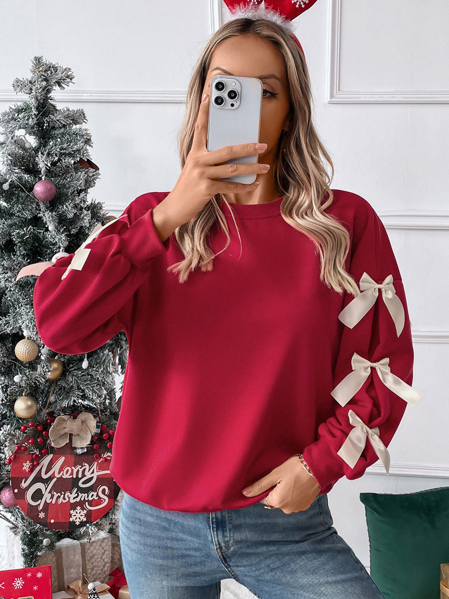 Жените реколта коледа червен лък случайни пуловер